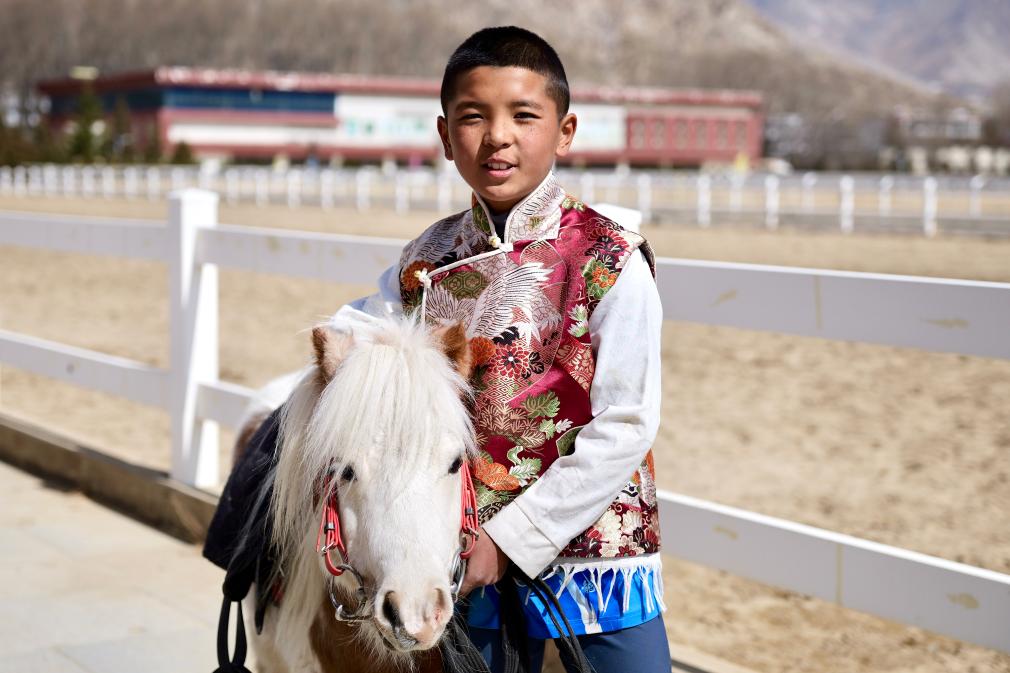 这是小骑手旦增晋美和他的马匹“小白”。新华社记者 周昱龙 摄