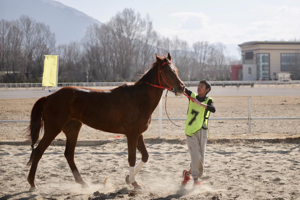 2月20日,选手们在民族赛马2000米比赛中。新华社记者 丁增尼达 摄