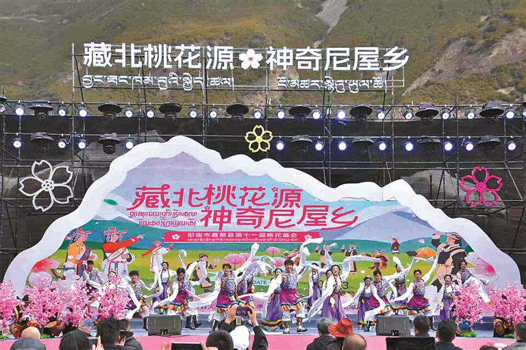 图为那曲市嘉黎县第十一届桃花盛会开幕式文艺演出。记者 汪纯 赵书彬 摄