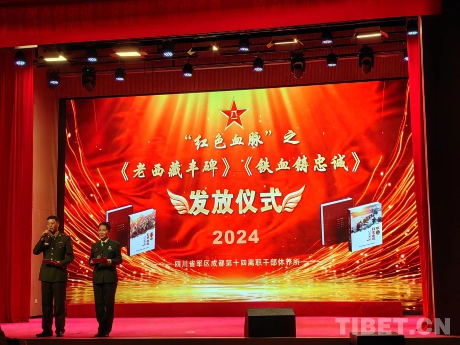 中国西藏网讯 10月11日,由40余位在川离休的中国人民解放军第十八军战士、老西藏前辈著述成册的红色文献《铁血铸忠诚》《老西藏丰碑》发放仪式及四川省军区成都第十四离职干部休养所(以下简称“干休所”)“优秀离退休干部家庭”颁奖典礼在干休所(原西藏军区川办干休所)礼堂举行。
