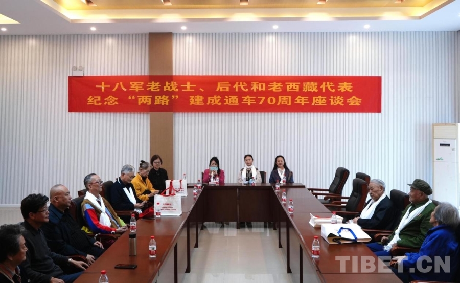 图为十八军老战士、后代和老西藏代表纪念“两路”建成通车70周年座谈会现场