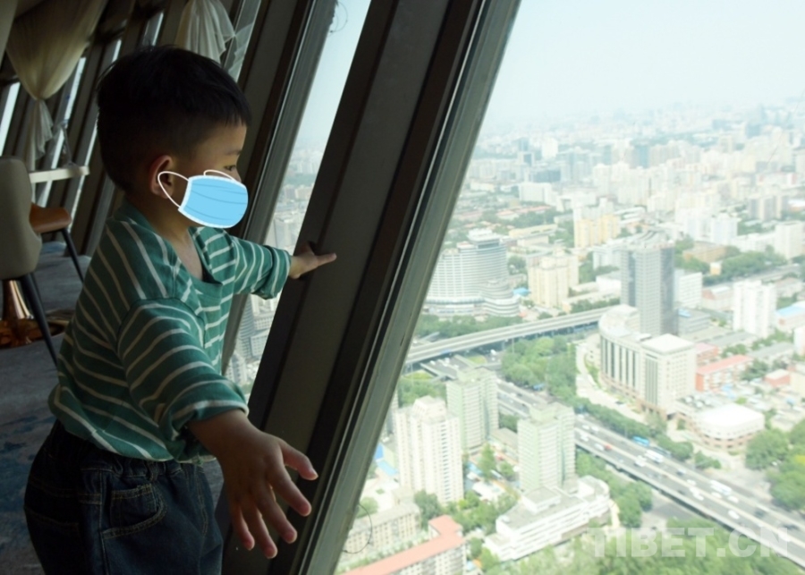 图为小卓玛在中央电视塔观景台 摄影:唐召明