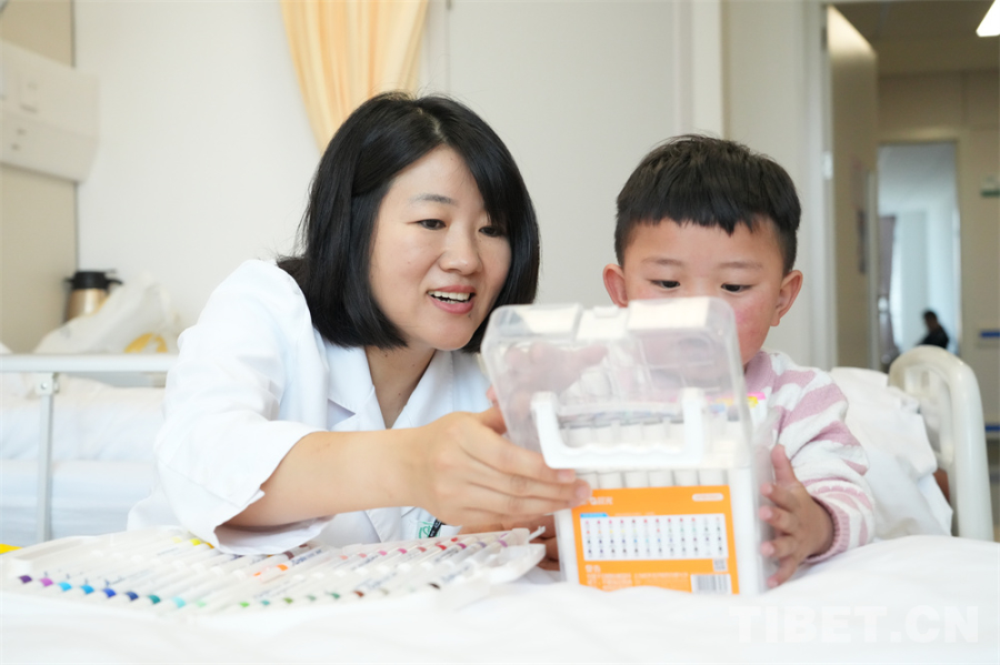 6月10日,小卓玛在北京的治疗告一段落,可以出院了。协会会长金书波等相关负责人和医院的陈伟、韩正学等前来看望小卓玛。此时的她已经没有了初来医院的紧张和羞涩,她觉得协会的爷爷奶奶、医院的叔叔阿姨,都是她的亲人和朋友。她舍不得摘下协会爷爷带上的哈达,拿着医生阿姨送的画笔写写画画,用还生涩的普通话跟医生护士一个一个打招呼、击掌,说“你好”“谢谢”……小小的身影在明亮舒适的病房里跑来跑去,笑声清脆,充满了活力。