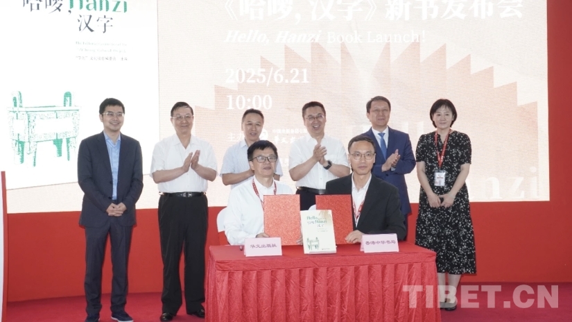 中国西藏网讯 6月21日上午,由华文出版社主办的《哈啰,汉字》(第一册)新书发布会暨版权签约仪式在北京国际图书博览会中国出版集团活动区举行。本次活动聚焦国际中文教育创新与汉字文化推广,吸引了来自出版界、学术界、国际教育机构的众多嘉宾参与。中国出版集团有限公司党组成员、中国出版传媒股份有限公司总经理茅院生,全国政协委员、国际儒联副会长李岩,华文出版社社长、总编辑余佐赞,中华书局(香港)有限公司董事、总经理、总编辑周建华,华文出版社副总经理董易,以及《哈啰,汉字》编委会主任李杨,《哈啰,汉字》编委会副主任李根信,《哈啰,汉字》编委会副主任、集思未来首席执行官颜盛等领导、嘉宾出席活动,共同见证这一文化盛事。