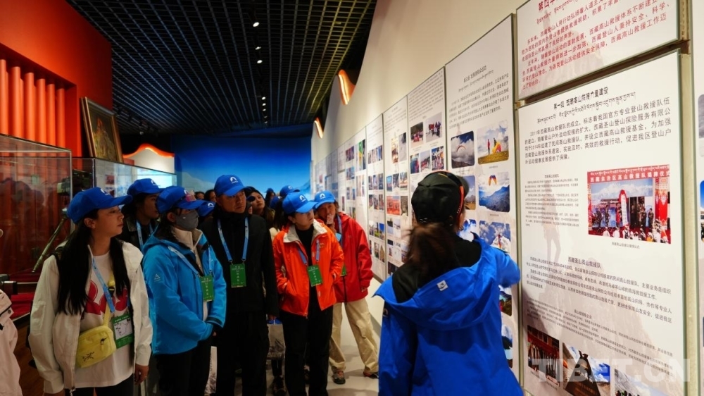 图为运动员参观西藏登山运动发展陈列馆,了解西藏登山运动的光辉历程 摄影:德吉卓玛