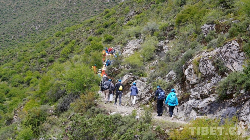 图为运动员们在堆龙德庆区楚布沟徒步 摄影:德吉卓玛