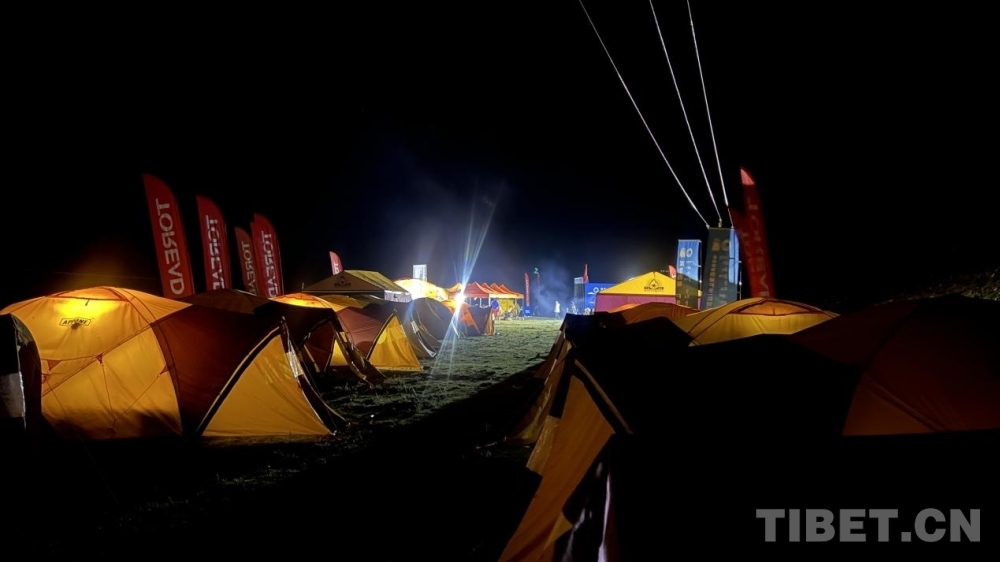 夜晚的营地,运动员们结束了充满意义的一天,开始休息。图为两排亮灯的帐篷在夜色下显得格外温暖 摄影:德吉卓玛