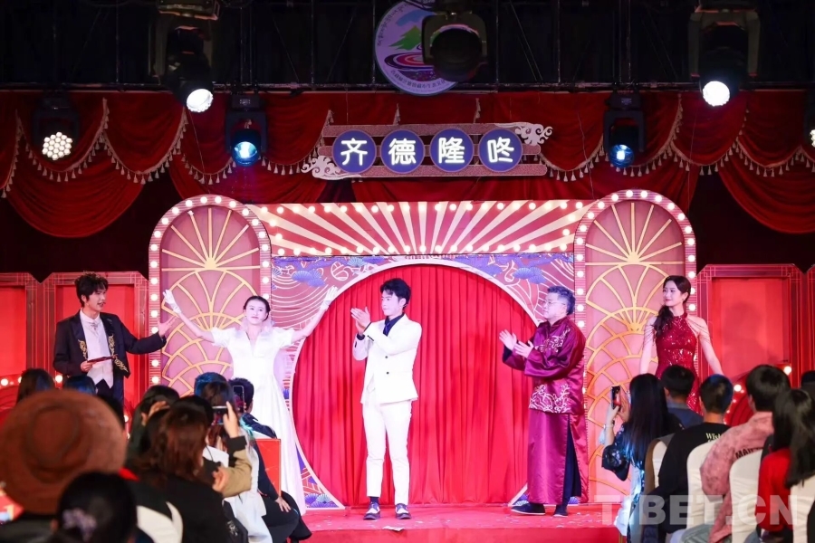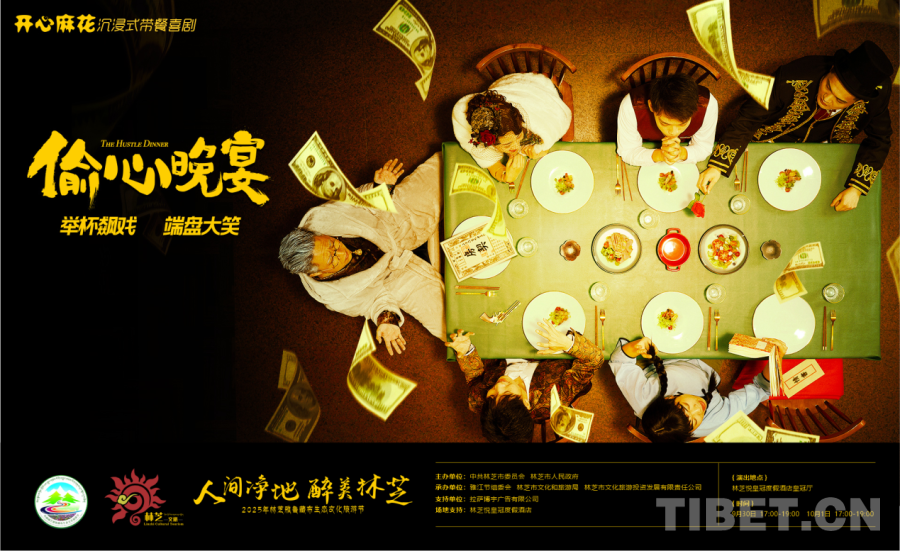 中国西藏网讯 当喜剧艺术邂逅高原风情,一场别开生面的文化盛宴在林芝精彩上演。9月30日晚,开心麻花沉浸式互动喜剧《偷心晚宴》在西藏林芝完成首演,为2025雅鲁藏布生态文化旅游节增添了一抹亮色,也标志着林芝文旅融合迈出新步伐。