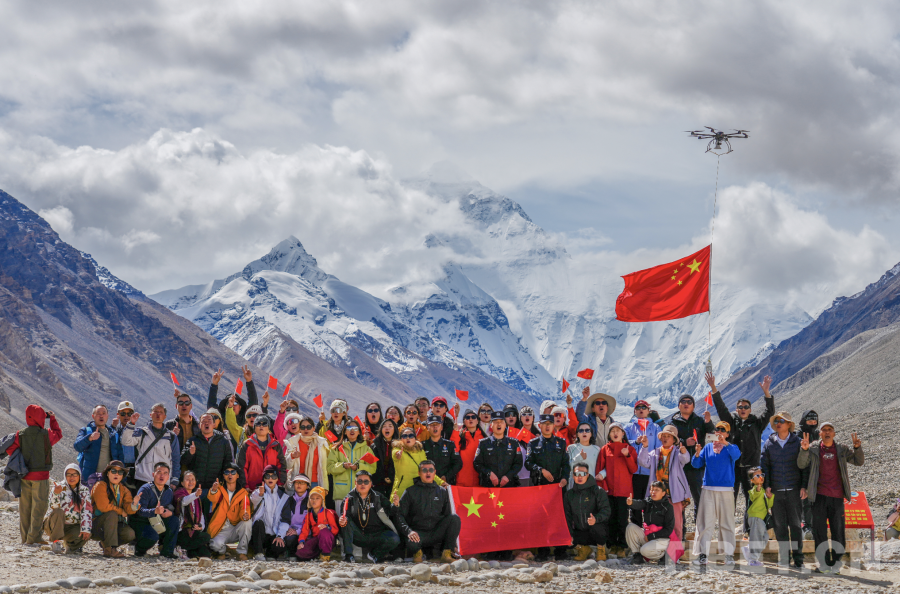 图为珠峰边境派出所民警在珠峰脚下和游客欢度2025年国庆节 摄影:叶轶