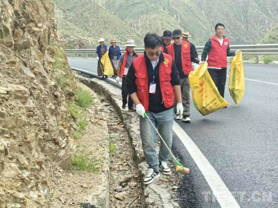 图为西热·罗布带领村民清理公路沿线的垃圾 图片由受访者提供