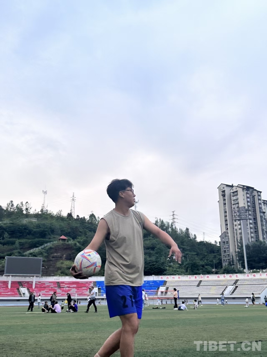西热·罗布业余喜欢通过运动充实自己,图为他在下班后打球 图片由受访者提供