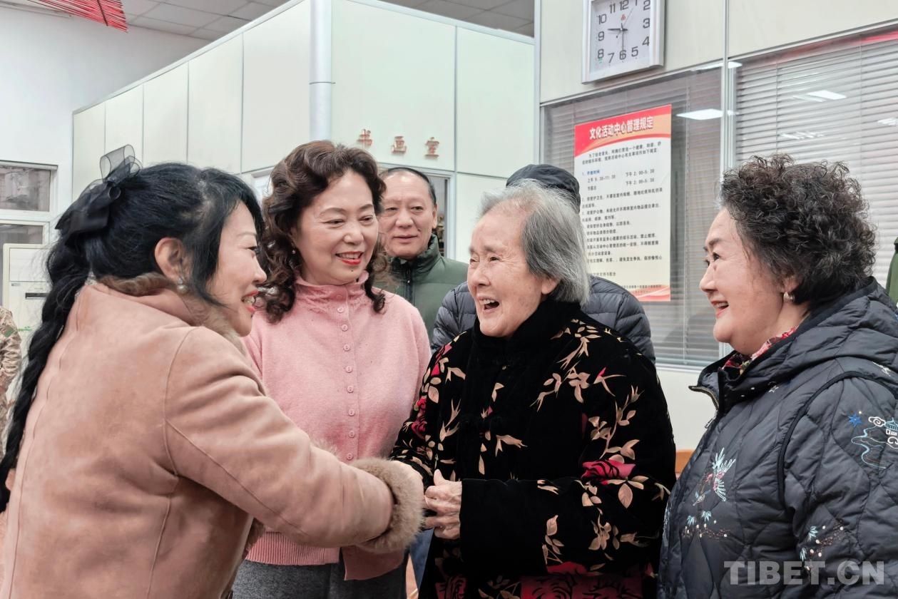 图为十八军后代和首批进藏女兵彭家英阿姨互动