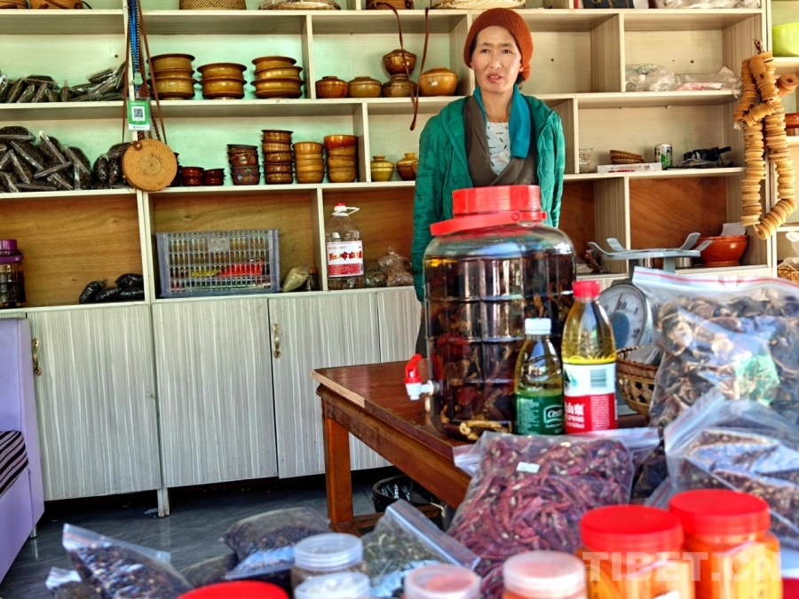 图为吉甫村的村民在自己经营的小店内