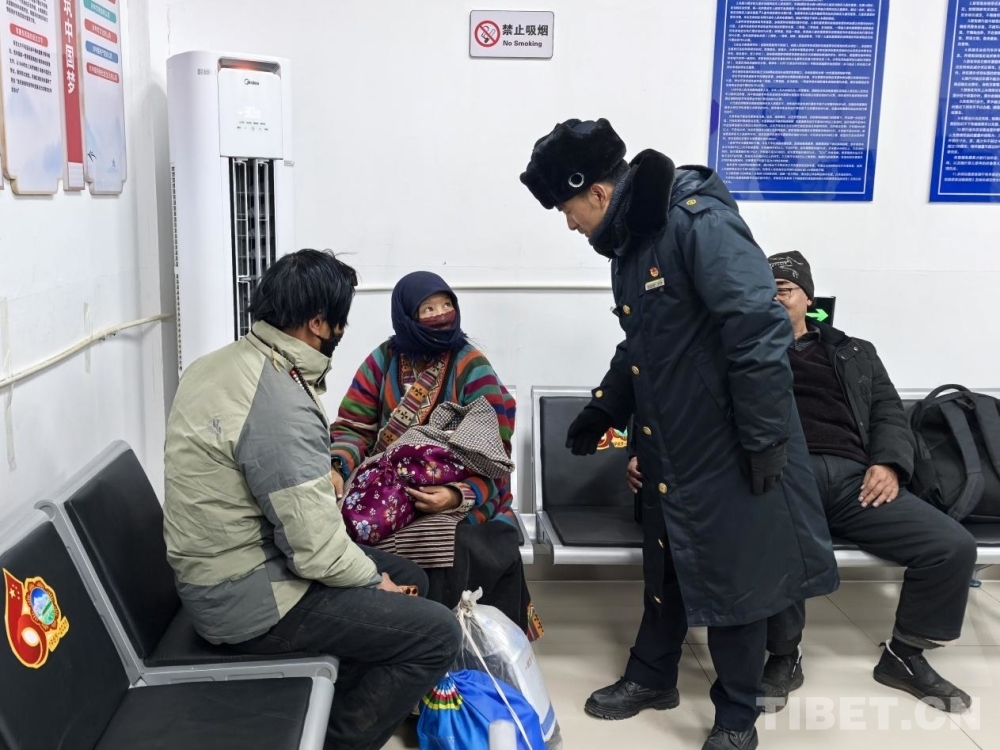 图为车站客运值班员桑杰平措与旅客交流 摄影:邹慧
