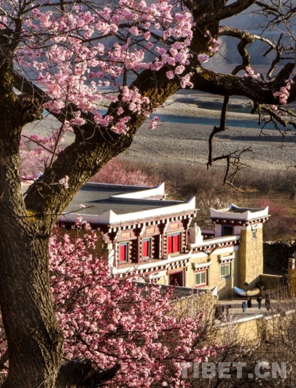 杏花和民居同框