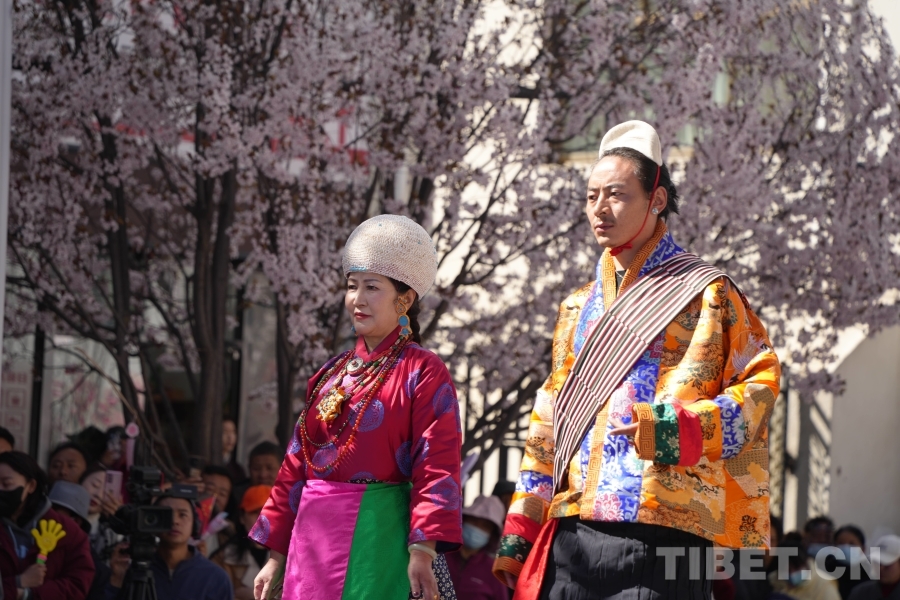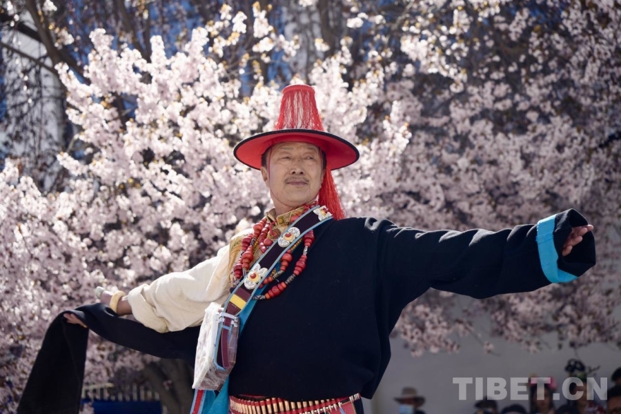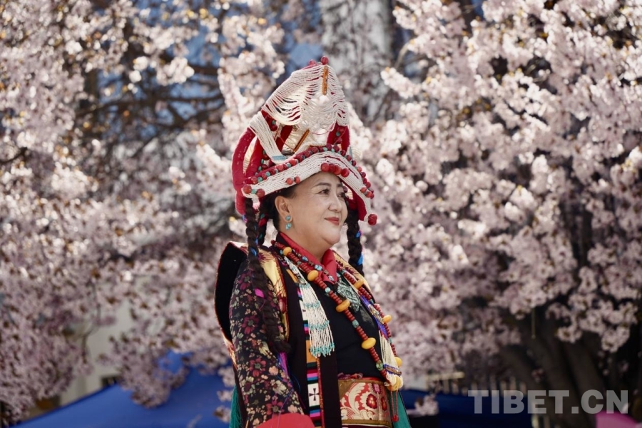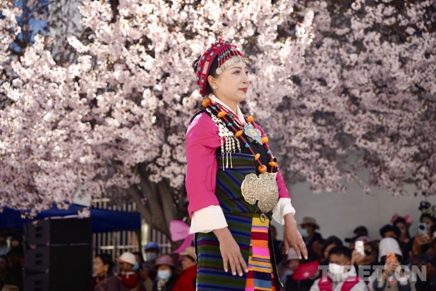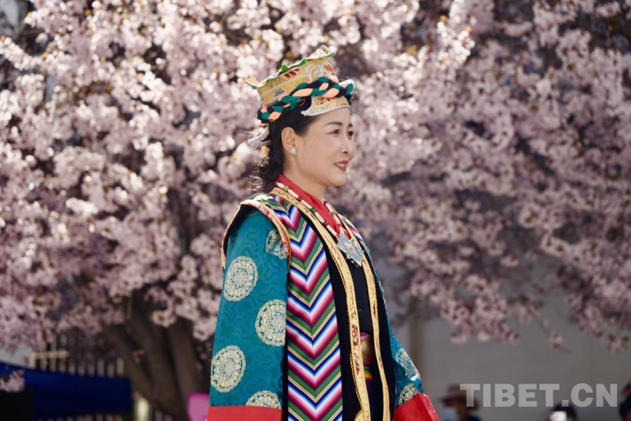 服饰文化是西藏传统文化的重要组成部分,基本特征为肥腰、长袖、大襟、右衽、长裙、长靴,并配有精美的金银珠玉饰品。受自然环境、民风民俗及生产方式影响,西藏服饰文化形成了鲜明的地域特色——拉萨服饰典雅庄重,日喀则服饰绚烂夺目,阿里服饰尽显华贵风范……传统服饰与桃花交相辉映,为观众呈现了一场流光溢彩的视觉盛宴。(中国西藏网 记者/德吉卓玛)
