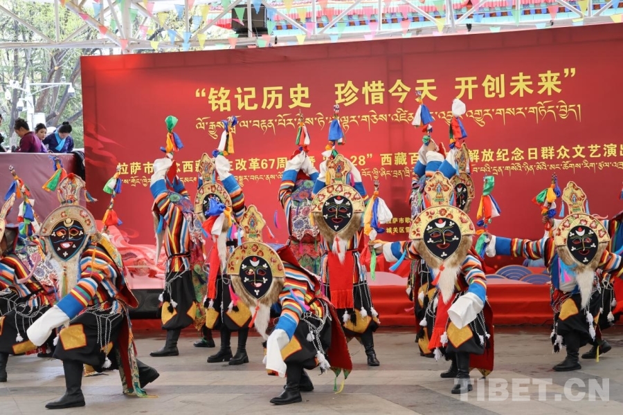 3月28日,以“铭记历史 珍惜今天 开创未来”为主题的纪念西藏民主改革67周年暨“3·28”西藏百万农奴解放纪念日群众文艺演出活动在拉萨举行。演出现场,各族各界群众自发前来观看。67年前的今天,雪域高原迎来新生,百万农奴挣脱枷锁,成为这片土地的主人;67年后的今天,拉萨正以昂扬姿态奔跑在高质量发展的康庄大道上。群众通过藏戏、噶尔鲁、扎念弹唱等丰富多彩的表演,共同纪念这个意义非凡的日子。(中国西藏网 实习记者/宋俊 张艺彤)