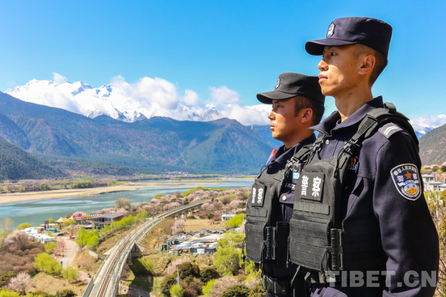 中国西藏网讯 4月2日,2026年林芝第二十三届桃花旅游文化节米林分会场活动在米林市扎西绕登镇彩门云上桃源景区开幕,活动现场紧邻拉林铁路。为确保铁路运输安全畅通,拉萨铁路公安处民警深入铁路沿线开展安全巡查,排查安全隐患,强化线路防控,用坚守守护平安,为春日盛会保驾护航。(中国西藏网 通讯员/黄飞)