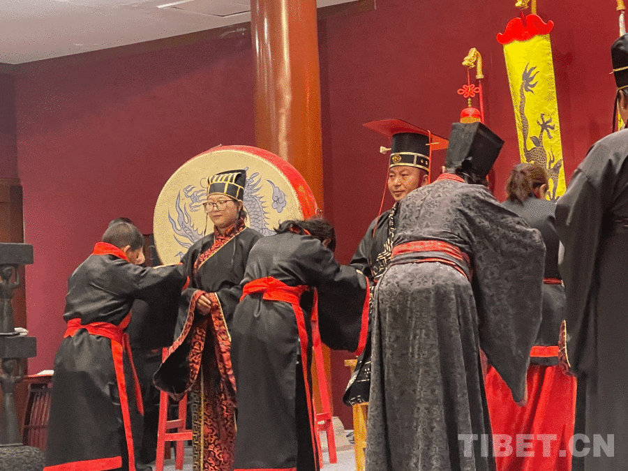 中国西藏网讯 4月22日下午,在孔子故里曲阜,一场庄重的开笔礼举行。来自西藏山南错那市的48名中小学生身着传统服饰,在司仪的引导下依次完成正衣冠、朱砂启智、启蒙描红、击鼓鸣志、拜师行礼等环节,在千年儒风的浸润中开启了对中华优秀传统文化的又一次体验。