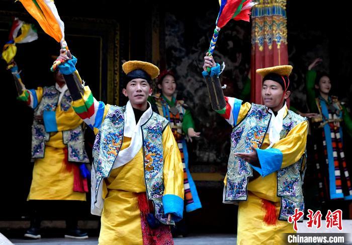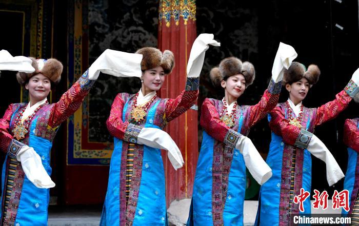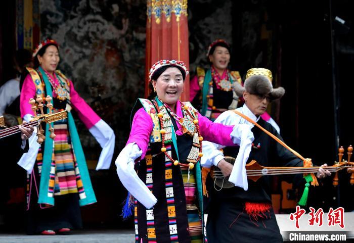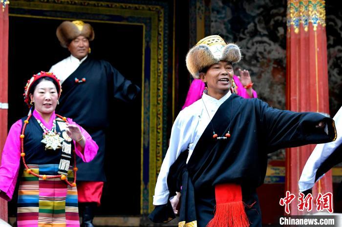 据悉,堆谐最早流传于日喀则,是由扎念琴乐器伴奏的舞蹈。扎念琴是堆谐“边弹、边唱、边舞”表演风格形成的关键。作为日喀则市桑珠孜区的重要非遗项目之一,堆谐以其独特的表演形式,受到了众多观众的喜爱。日喀则市谐钦则起源于1883年,其韵调古朴,表现独特,显示出浓郁的西藏风景和鲜明的地方特色。谐钦演员们精湛的表演技艺、华丽的戏服,将古老的西藏歌舞艺术完美呈现在这座古建筑前。