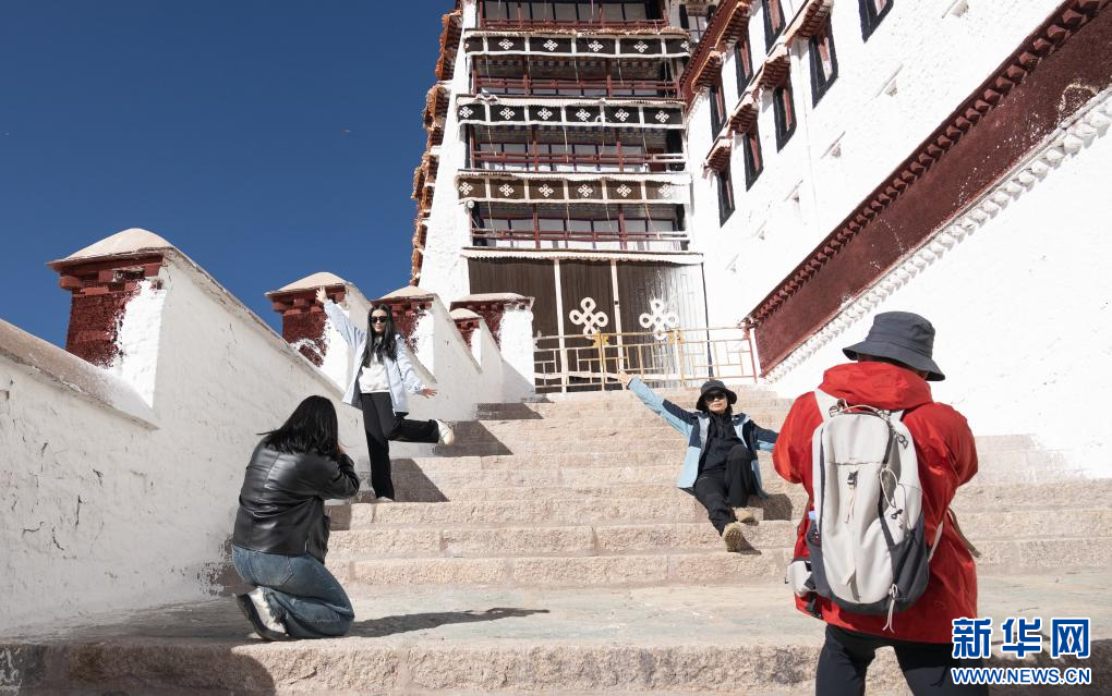 11月3日,游客在布达拉宫拍照留念。 新华社发(丁增尼达 摄)
