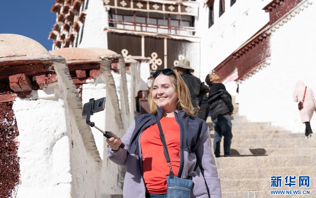 11月3日,游客在布达拉宫自拍。 新华社发(丁增尼达 摄)