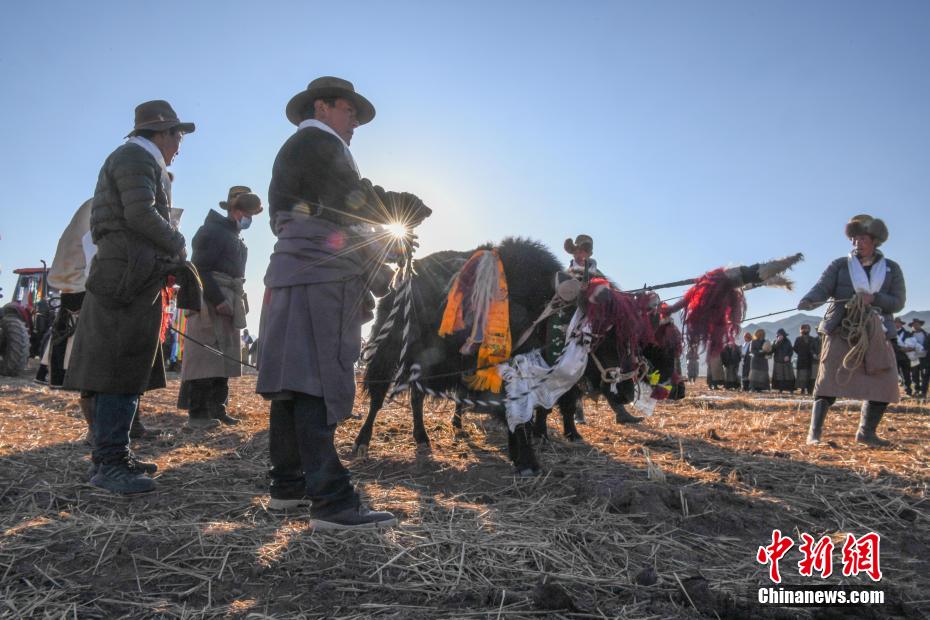 3月16日,西藏拉萨迎来一年一度盛大的传统春耕仪式。当日是藏历正月二十四日,按照藏历传统,是西藏农区开耕的日子。图为清晨拉萨市林周县春堆村春耕仪式现场。