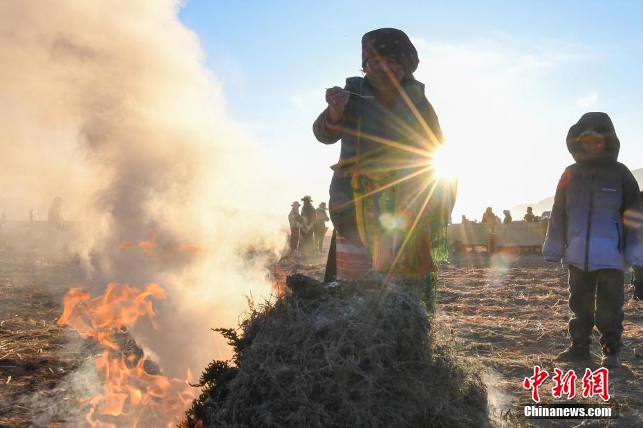 3月16日,西藏拉萨迎来一年一度盛大的传统春耕仪式。当日是藏历正月二十四日,按照藏历传统,是西藏农区开耕的日子。图为拉萨市林周县春堆村村民在春耕仪式前煨桑。