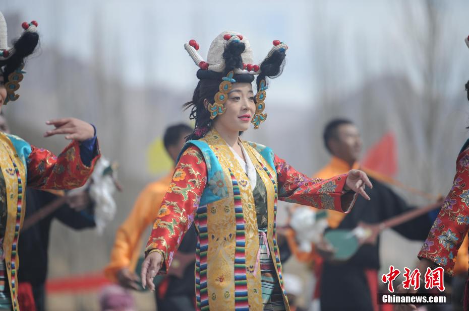 3月16日,西藏拉萨迎来一年一度盛大的传统春耕仪式。当日是藏历正月二十四日,按照藏历传统,是西藏农区开耕的日子。图为拉萨市林周县强嘎村春耕仪式上的文艺表演。