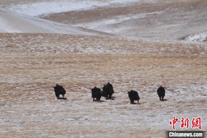 12月23日,在那曲市双湖县附近,一群野牦牛向雪山奔跑而去。 江飞波 摄