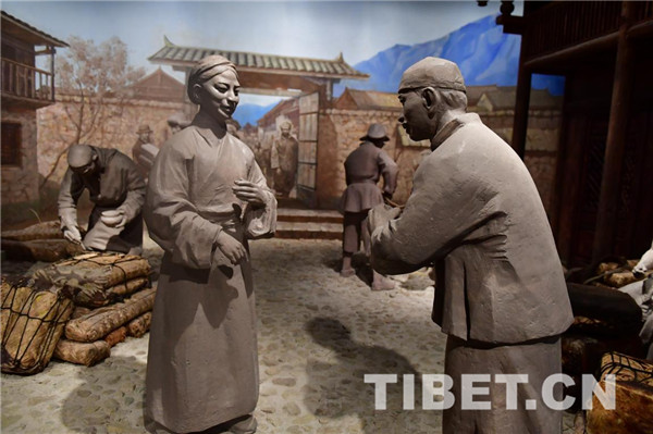 300多年前,康熙帝“行打箭炉市,蕃人市茶贸易”的一纸王命改变康定的命运,茶马互市让这片荒滩变成了西陲重镇。在甘孜藏族自治州博物馆里,学员们看到了当年康定茶马互市集散地“锅庄”的场景还原。内地靠人背、马驮而来的茶叶到了这里便要换牦牛运送进入藏区,而内地茶叶打包的形状不适合藏区牦牛背驮,茶叶要重新打包,人们也要落脚休息,“锅庄”就是这样形成的。与此同时,人们在锅庄闲暇娱乐时所跳的舞蹈也被命名为“锅庄舞”,一直传承至今。