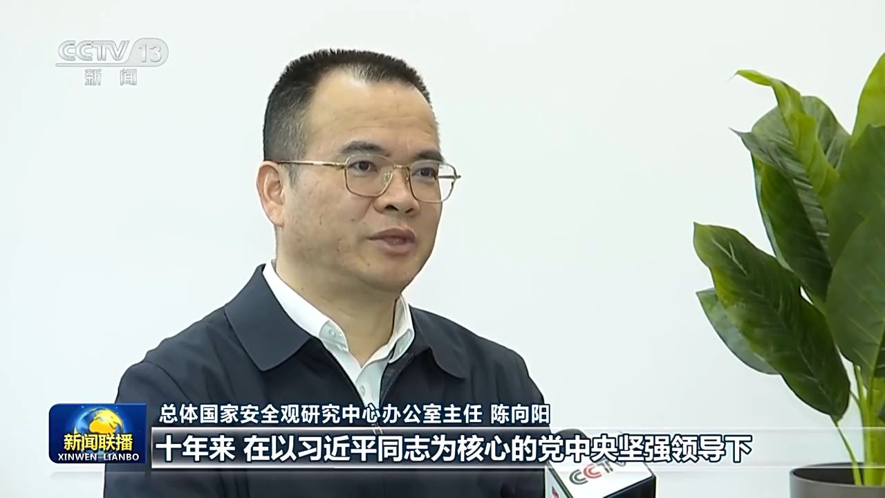 总体国家安全观研究中心办公室主任 陈向阳:十年来,在以习近平同志为核心的党中央坚强领导下,我们贯彻总体国家安全观,国家安全领导体制和法制体系、战略体系、政策体系不断完善,实现国家安全工作协调机制有效运转、地方党委国家安全系统全国基本覆盖,国家安全得到全面加强。