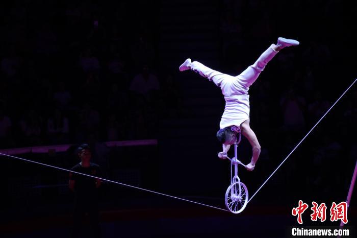 当地时间8月9日,哈萨克斯坦阿斯塔纳,“亚洲回声”国际马戏艺术节启幕。图为中国杂技演员献艺。 中新社记者 张硕 摄