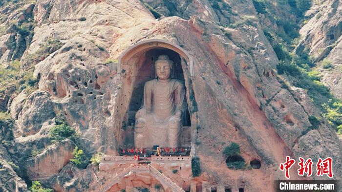 中新网银川9月7日电 (记者 李佩珊)初秋时节,须弥山旅游景区山巅古松挺拔,山下流水潺潺,苍松翠柏与山寺、亭台楼阁交相辉映。经过3年数据检测和收集,架在须弥山唐代大佛周围的脚手架和保护网日前已全部拆除,大佛再次完全展露,迎接八方来客。