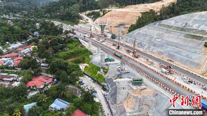 正在施工的28号桥,高速公路车流未受影响,依然在顺畅运行。 中交马东铁项目供图