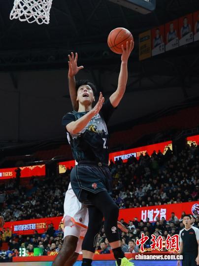 吉林队栾利程(黑衣)持球上篮。 吴金泽 摄
