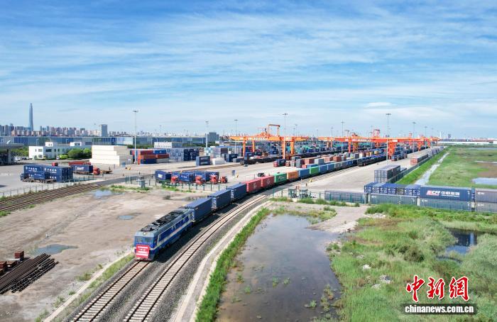 开往乌兰巴托的中亚班列从天津新港北站启程。记者 贾天勇 摄