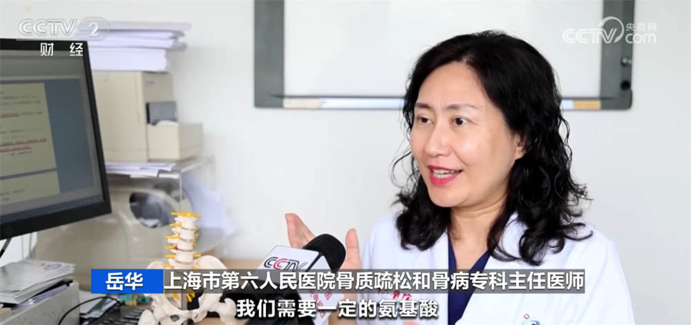 上海市第六人民医院骨质疏松和骨病专科主任医师岳华称:“需要一定的蛋白质,需要一定的氨基酸,当然均衡饮食最重要。”