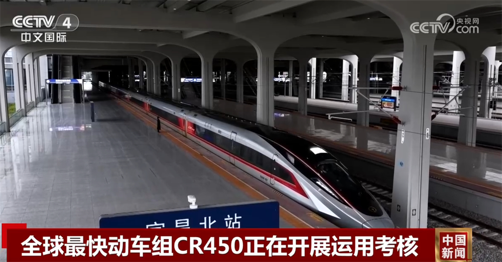 央视网消息:被称作“全球最快高铁”的CR450动车组样车去年底公布后,目前正在不同速度、不同场景中进行多项试验。试验期间,CR450动车组跑出了动车组单列时速453公里、相对交会时速896公里的最新纪录。目前,CR450动车组正在沪渝蓉高铁开展运用考核。来看总台央视记者20日在宜昌北站试验现场发回的报道。