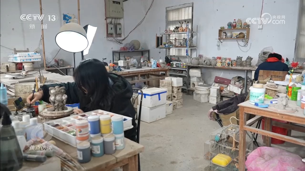 这天分享创业心得的是毕业于景德镇陶瓷大学雕塑系的陈赛杰。他的工作室安置在一座废弃的小厂房里,工作室虽小,但配置齐全。有人制坯,有人彩绘,主体的雕塑部分则主要是陈赛杰和妻子携手完成。眼下,正在赶工的瓷雕作品系列创作灵感来自于已经六岁的儿子庚庚。