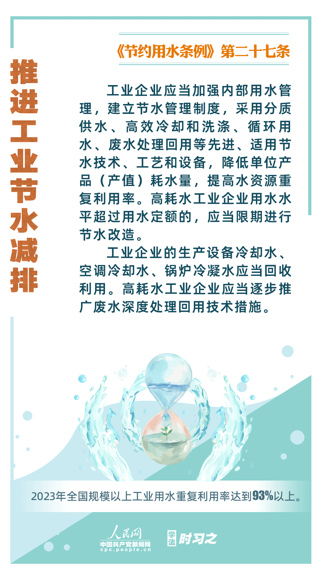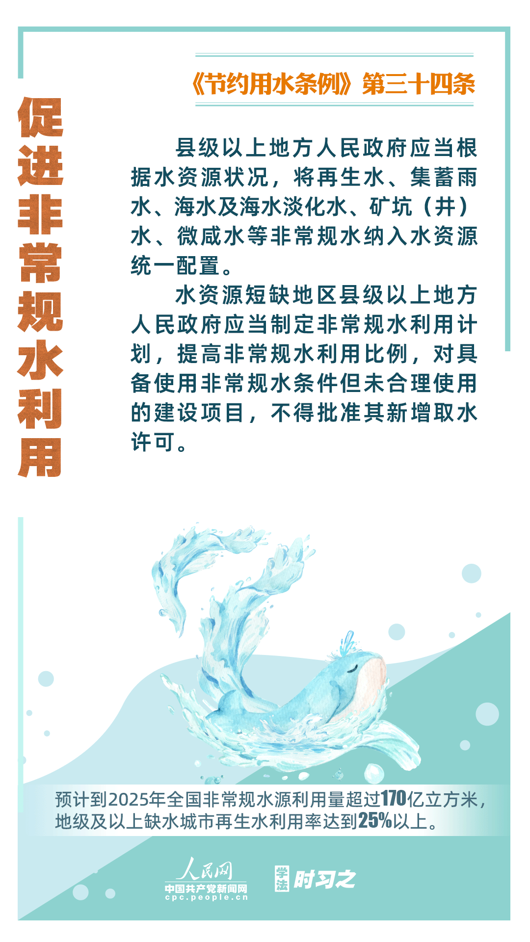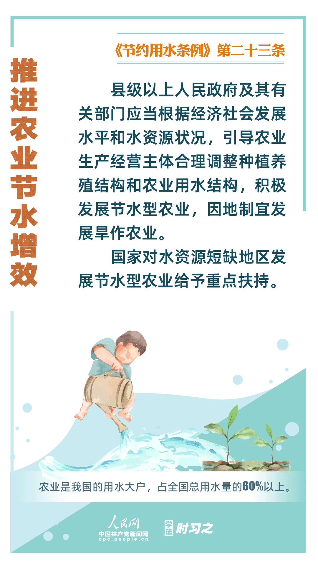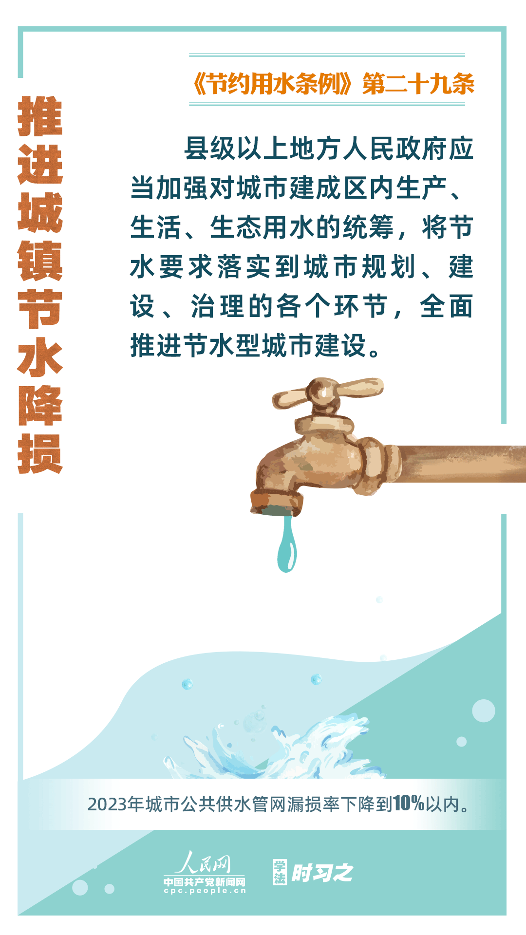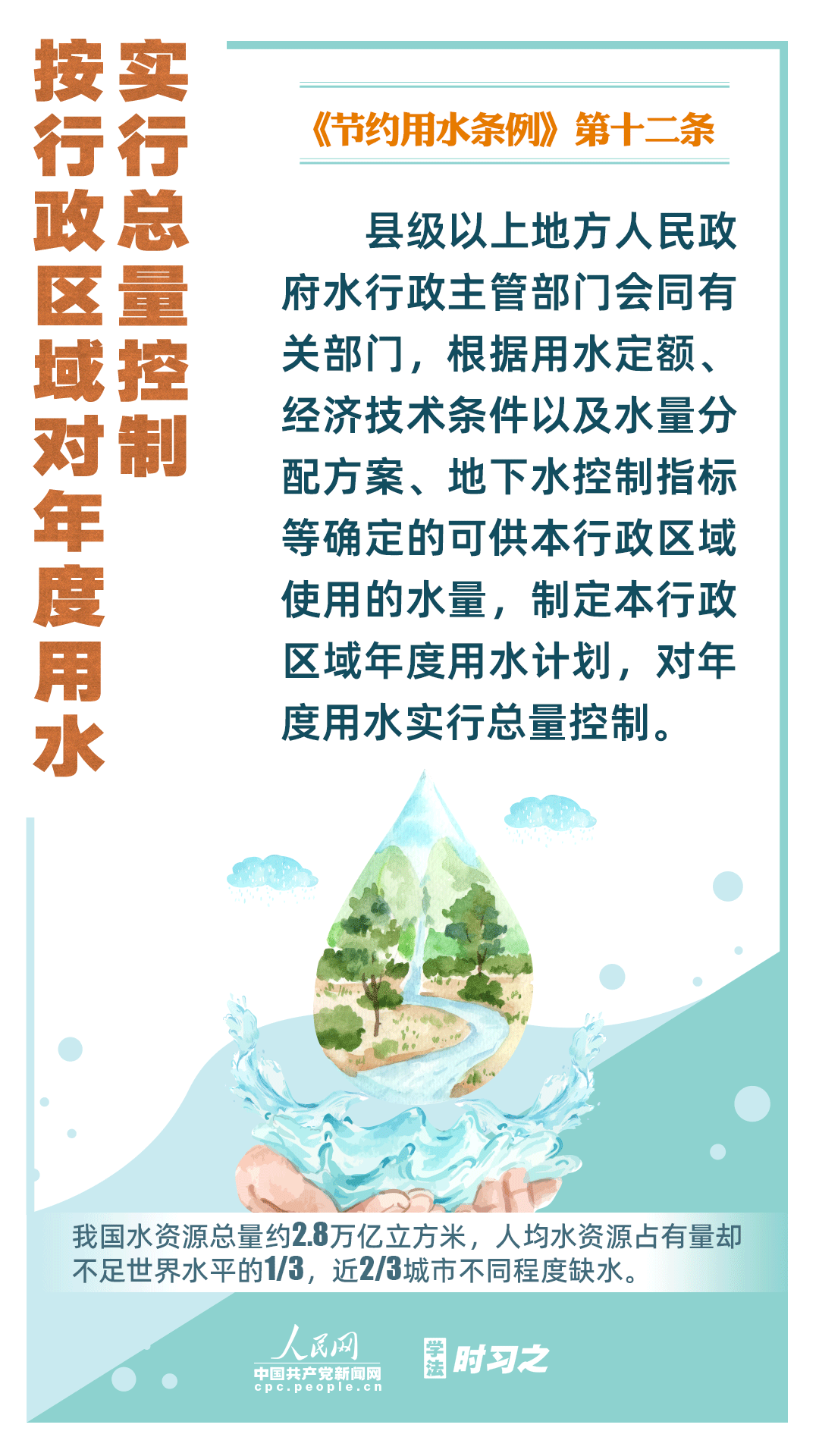 《节约用水条例》(以下简称《条例》)将于2024年5月1日起施行,这是我国首部节约用水行政法规。节约用水,是解决我国水资源短缺问题的根本措施,《条例》以水资源可持续利用为目标,建立健全节水制度政策体系,以法治方式和法治途径实现水资源节约集约高效利用,促进全社会节约用水。
