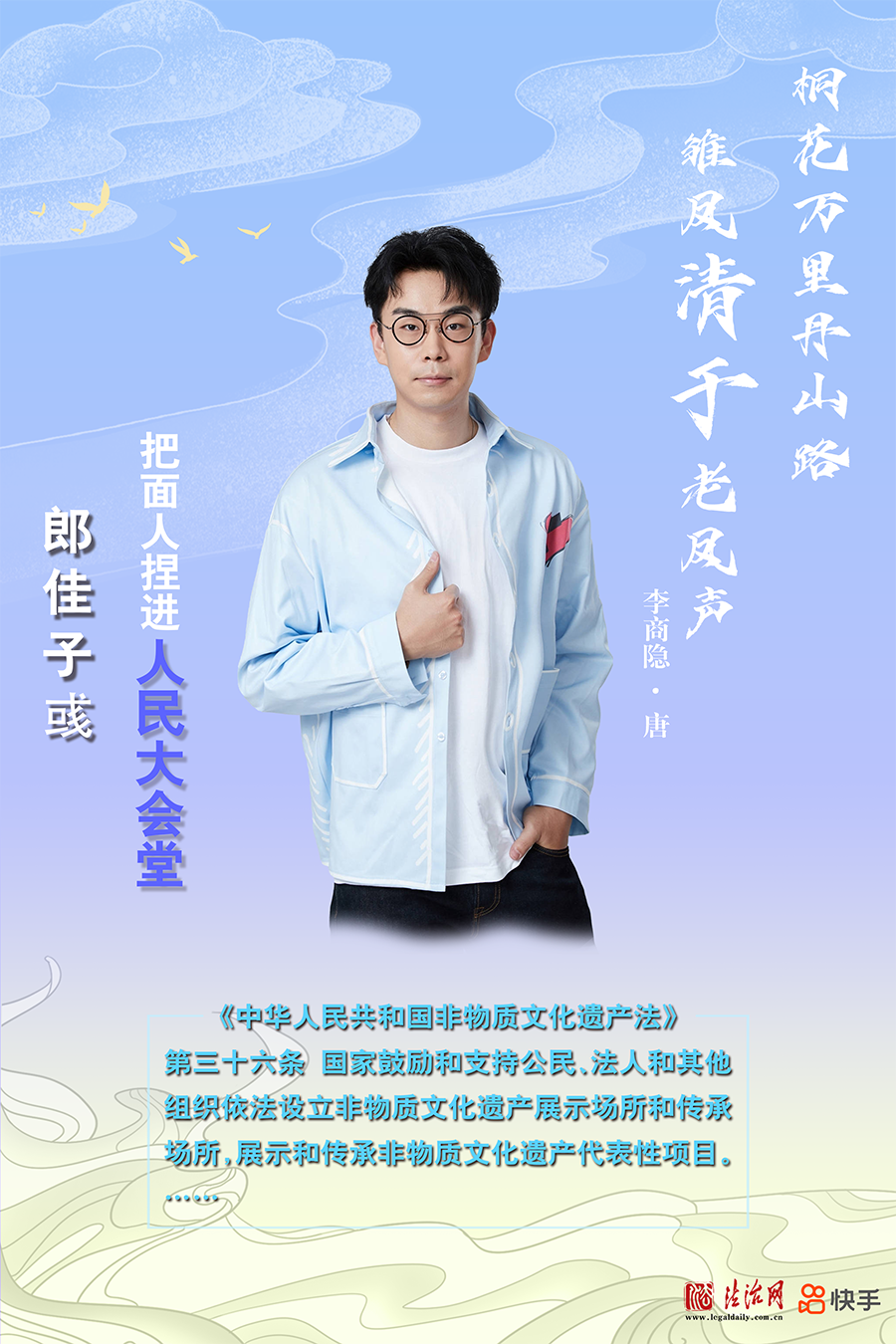 郎佳子彧毕业于北京大学艺术学院,国家级非遗“北京面人郎”第三代传承人。他自幼受家庭熏陶,3岁随父亲郎志春学艺,至今已20多年。他尝试用老手艺做新题材,同时探索利用短视频、直播等新媒介展示传统技艺,让更多人了解并爱上面塑。