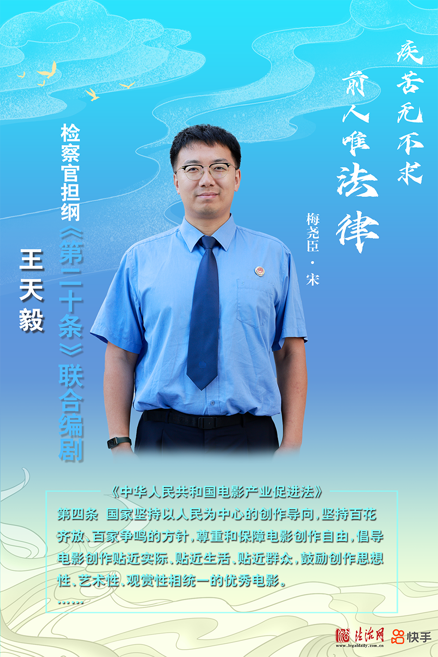 北京市朝阳区人民检察院第四检察部副主任王天毅作为联合编剧,深度参与《第二十条》剧本创作。剧本中,涉及检察官工作的内容都由王天毅执笔。《第二十条》是国内首部聚焦“正当防卫”议题的法治题材影片,以艺术性的角度向观众阐明:“法不能向不法让步”不是口号。