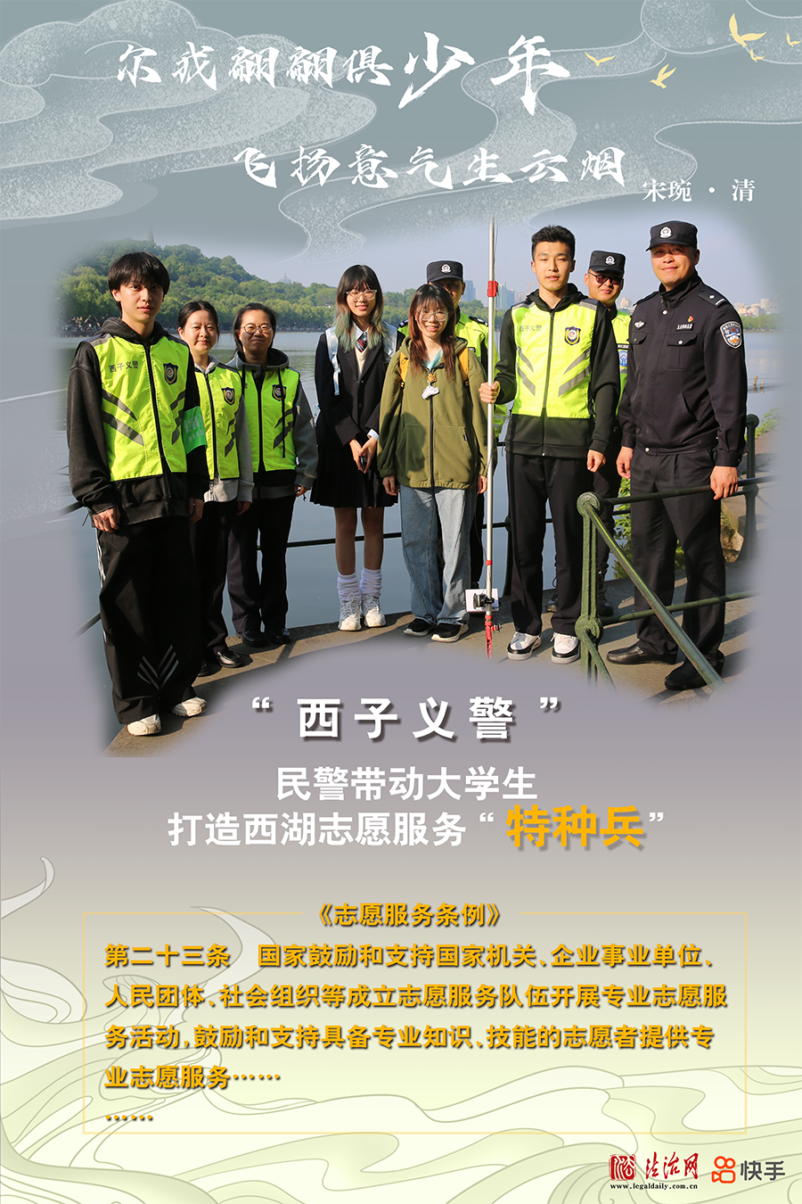浙江省杭州市公安局西湖风景名胜区分局组织公安巡特警、消防、交警、行政执法、平安志愿者等各方力量参与社会治理工作,逐渐壮大的“西子义警”队伍已成为西湖边守望平安的重要力量。近期,一群朝气蓬勃的青年大学生加入“西子义警”队伍,共同营造更加和谐的西湖景区平安环境。