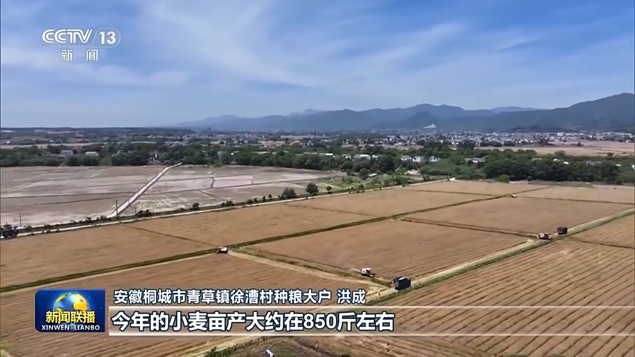安徽桐城市青草镇徐漕村种粮大户 洪成:基本上实现了机械化,今年的小麦亩产大约在850斤左右,较前几年相比来说增长了15%,亩产值大约上涨了10%左右。