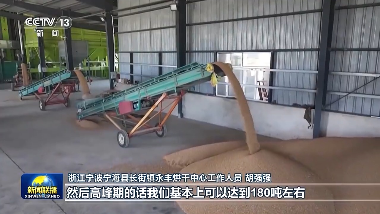 浙江宁波宁海县长街镇永丰烘干中心工作人员 胡强强:一天我们目前烘干量在100来吨,高峰期我们基本上可以达到180吨左右。