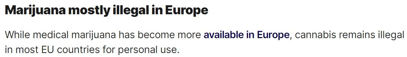 即使在毒品问题同样严峻的欧洲,虽然医用大麻越来越容易获得,但在大多数欧盟国家,个人吸食大麻仍是非法行为。