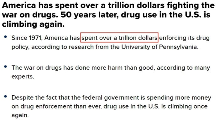 早在《联邦管制物质法案》出台后的上世纪70年代,美国政府就曾高调对毒品“宣战”,至今已为“禁毒”花了上万亿美元。