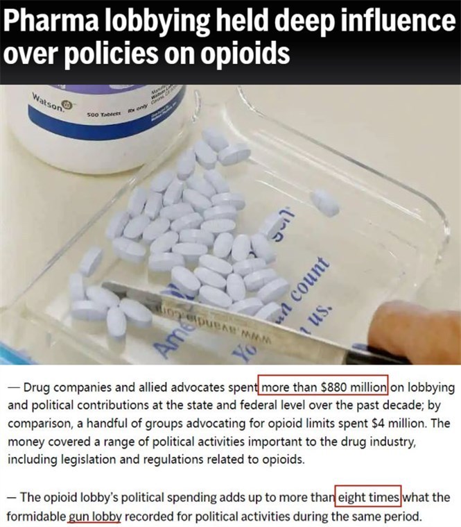 据美媒披露,为了阻止药剂师更谨慎地开具处方、推动药房快速售药,阿片类药物制造商和经销商在近十年内共花费了8.8亿美元用于“打通关系”,比美国枪支游说集团花的钱还要高8倍。