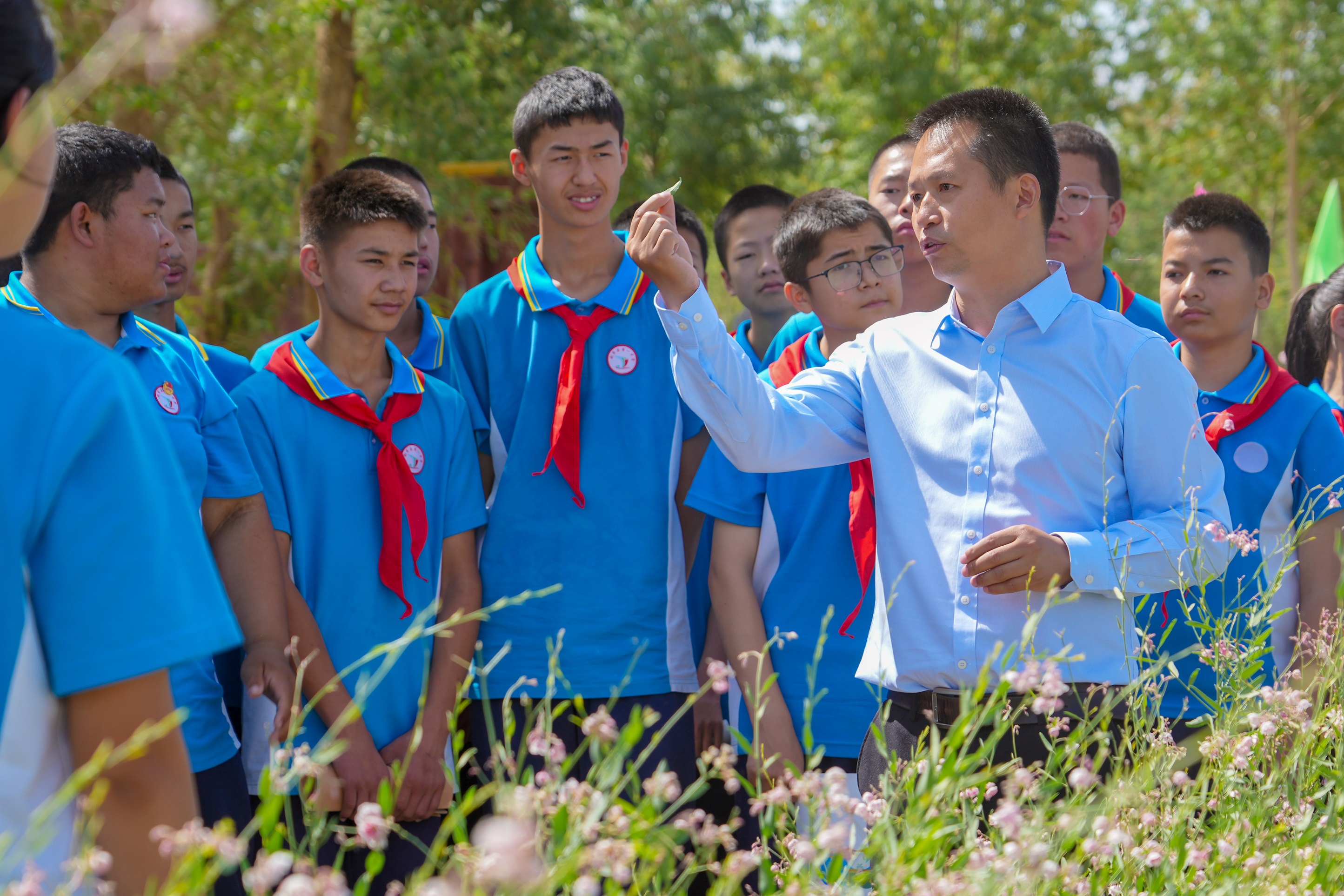 学生们在尉犁县罗布麻种植基地参观。奥琼 摄
